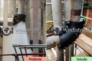 Reparos de vazamento em linhas e equipamento, sob pressão e temperatura.